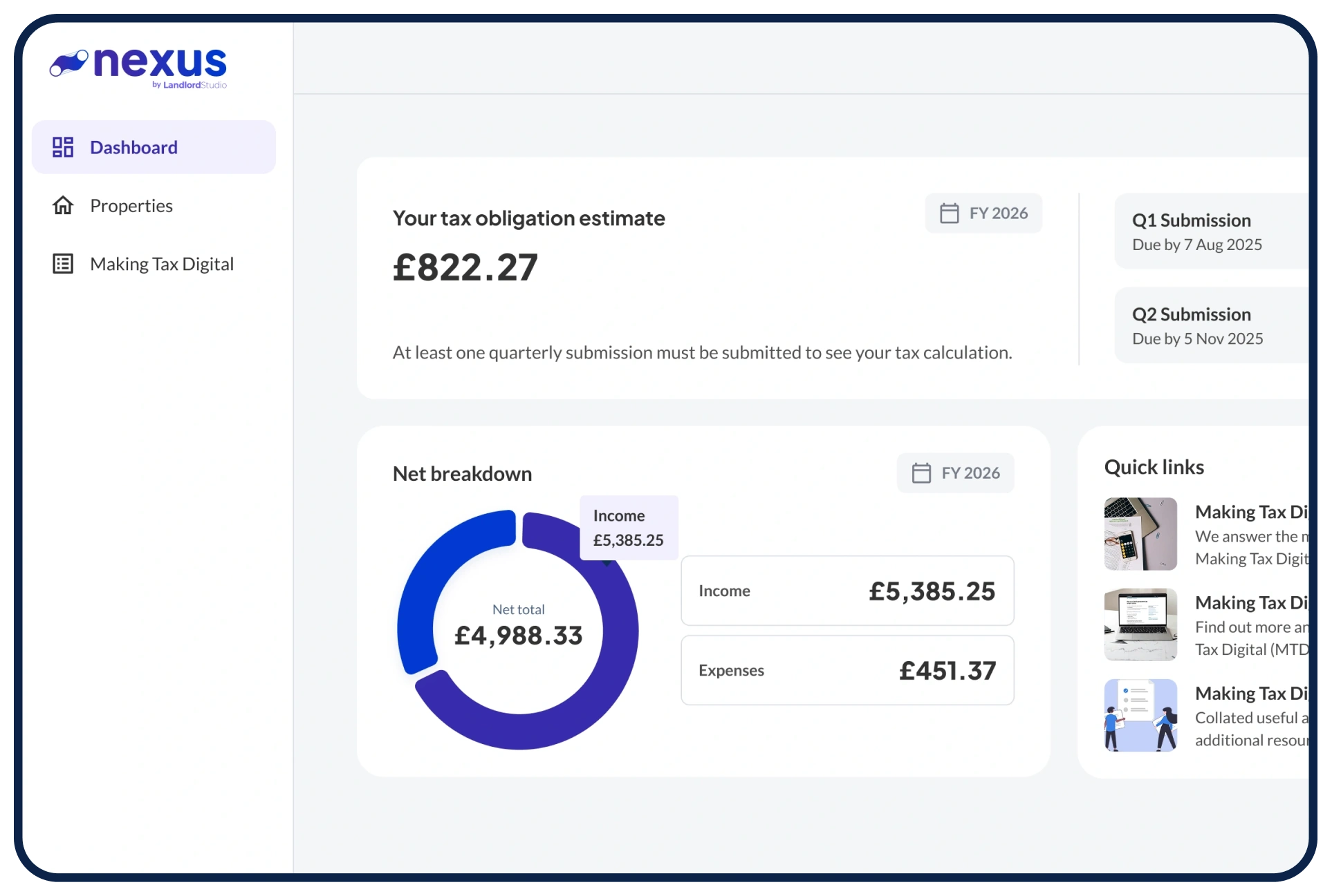 Landlord Studio and Nexus serve different use cases. Nexus exists to help agents support landlord MTD submissions using agent-held data, without changing how agents or accountants work.